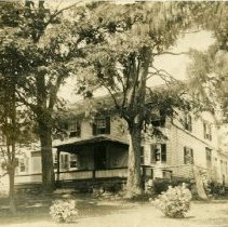 A black and white photograph of the exterior of the Hickox House. In blue ink on the back: "Hickox" In pencil on the back: "Hickox?"