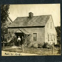 A series of four black and white photographs of the Pond - Randall House mounted on board. Located at 97 Judea Cemetery Road, Washington, CT. The house has been considerably enlarged since these pictures were taken. In red ink on a strip of masking tape affixed to the back: "East Street Property - Diagonal on Doug Green 1984. Originally [illegible]." In black ink on the back (as part of a rough map): "Doug Green" and "Farrand" and [illegible] ...